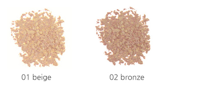 -크렌베리씨,해초,비타민 E,천연 에센셜 오일,석면 등으로 제조된 파우더 제품입니다. -메이크 업을 위한 기본단계의 파우더 제품이며 끈적거리거나 날리지 않고 이 후의 화장이 피부에 잘 받아들여 지도록 도와 줍니다. -02 golden bronze는 어두운 색상으로 쉐이딩 용으로 사용하셔도 좋습니다. 성분 Mica, china clay, mixing essential oils, triglycerides, silica, vitamin E, cranberry seed oil, apple seed extract, brown seaweed extract, mixing precious stone powder, sunflower oil *, Vitamin C - Palmitate, Maltodextrin, Rosemary Extract, Mineral + natural dyes |
