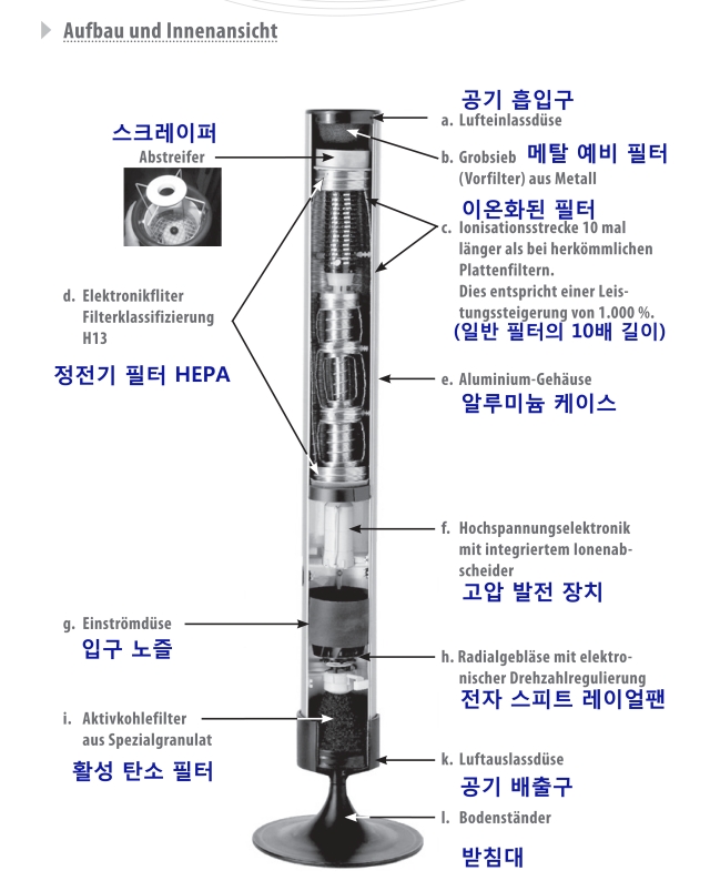 -나노드론은 독일 HEALTH AIR Technology 사에서 개발한 첨단의 공기 청정기 시스템으로 독일의 첨단 기술과 친환경 기술이 집약된 제품으로 정전기와 필터 원리에 의해 1nm (=Nanometer1/10억 미터)) 크기의 미세먼지는 물론 모든 유해입자를 제거하는 제품입니다. -나노드론의 1nm (=Nanometer1/10억 미터)) 크기의 미세먼지는 물론 모든 유해입자를 제거하는 성능은 HEPA 13 필터 기준보다 더 높은 분리 효율로서 다른 기종과의 비교에서 확실한 우위를 차지하는 유일한 제품입니다. -창의적인 아이디어와 첨단의 기술 솔루션의 결정체라 할 수 있는 나노드론 제품은 공기 중의 미세먼지는 물론 초 미세 먼지,바이러스,곰팡이,박테리아,일산화탄소,황산 및 질소,페놀,아연, 납,벤질,포름 알데히드,석면 등을 제거 또는 정화해 줍니다. -담배 연기,페인트 냄새,곰팡이 포자,애완 동물의 냄새는 물론 새집 증후군은 물론 알레르기 아토피의 모든 생물학적인 원인이 되는 인자를 제거해 줍니다. -나노드론 공기 청정기 시스템은 예비필터,전기 가스 필터,고압의 전자,탄소 필터,공기 이온화 단계 등의 복잡한 구조를 통해 공기를 정화 하지만 유지 보수는 아주 간단하며 컴팩트하고 독특한 디자인의 제품입니다. -시스템 작동에는 최소의 전력이 소비되며 낮은 소음을 자랑하며 수명이 반영구적이며 제품의 보증 기간은 5년 입니다. -인간의 키 높이에 공간의 부유물이 가장 많기 때문에 효고적인 공기 정화를 위해 나노드론 시스템의 높이는 스탠드를 포함해 약 165 cm 입니다. -4단계로 작동이 조절되며 최대 40평 규모까지 공기가 정화됩니다. -제품 상단의 예비 필터는 2주에 한 번씩 청소해 주시기 바랍니다. -전기 필터는 고합금 철강 제품으로 9~12개월에 한 번씩 점검,청소하여 재사용 합니다. -활성 탄소 필터는16~ 24개월에 한 번씩 점검,교체합니다. -제품 배송은 약 2~6주가 소요됩니다. -본사에 주문 접수 후에는 주문 취소가 불가능합니다. -순수한 야외 공기와 같은 이온화된 실내 공기는 인간의 건강에 아주 중요하여 스트레스 해소 물론 호흡기 질환의 문제점을 완화시키고 중추 신경계를 안정 시켜 신진 대사와 혈압을 정상화 시켜 인간의 면역력을 증가 시켜 질병을 예방,치료하여 평균 수명을 약 5년 정도 늘려 준다는 연구 결과가 있습니다.