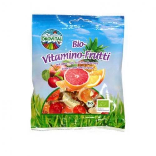외코비탈 비타민 젤리 100g Ökovital Vitamino Frutti 100g 아세로라의 천연 비타민 C가 포함된 젤리입니다. 옥수수 시럽,비정제 설탕,유기농 젤라틴,오렌지,키위,귤,사과,레몬,자몽, 파인애플 등의 과일 농축액으로 제조된 젤리입니다. 일체 과일맛 화학첨가물과 식용색소등을 첨가 하지 않았습니다. 색은 망고,홀룬더,시금치,브레네쎌,강황 등의 자연 원료로 만들었습니다. 서늘하고 건조한 곳에 보관하시길 권해드립니다. 3세 이하 어린이에게는 먹이지 마시길 바랍니다. Corn syrup *, cane sugar * (not refined), porcine gelatin *, fruit juice concentrates * (lemon, kiwi, tangerine, orange, pineapple, grapefruit, apple), acid (citric acid), acerola *, gelling agent (apple pectin), coloring fruit and vegetable extracts (orange, passion fruit, mango, Chinese yellow berry, elderberry, spinach, nettle, turmeric), natural flavor, separating agents (coconut and palm kernel oil, Carnau-ba-and beeswax) |