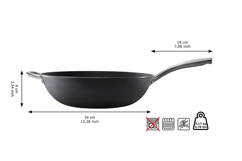 스코츠버그 CAST IRON 웍 34cm x 52cm 무게:2kg PFOA-free 스코츠버그 Cast Iron 라인 제품은 경량 주철로 제조된 제품으로 일반 주물팬,철팬 보다 가볍습니다. 식물성 기름으로 미리 연소하여 천연 논스틱생성 가스,그릴,하이라이트,인덕션,오븐,직화 등 모든 조리열기구에 사용 가능합니다. 식기세척기 사용은 불가능합니다.